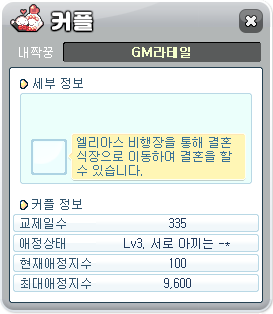 등급별 커플과의 파티 사냥 시 1%의 올스탯 증가 효과를 얻습니다. (최대 10%)