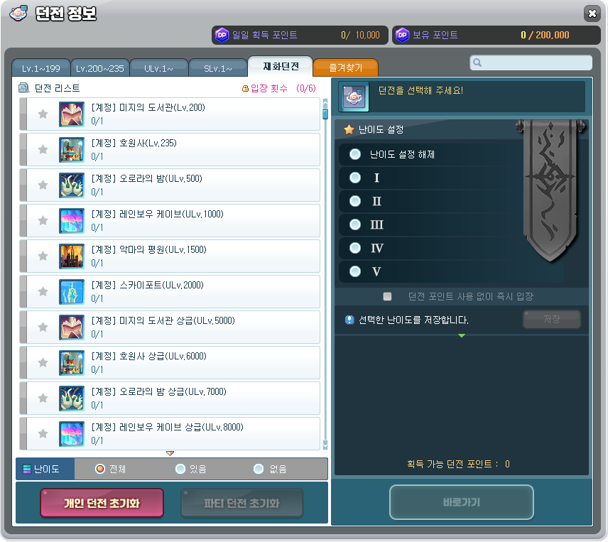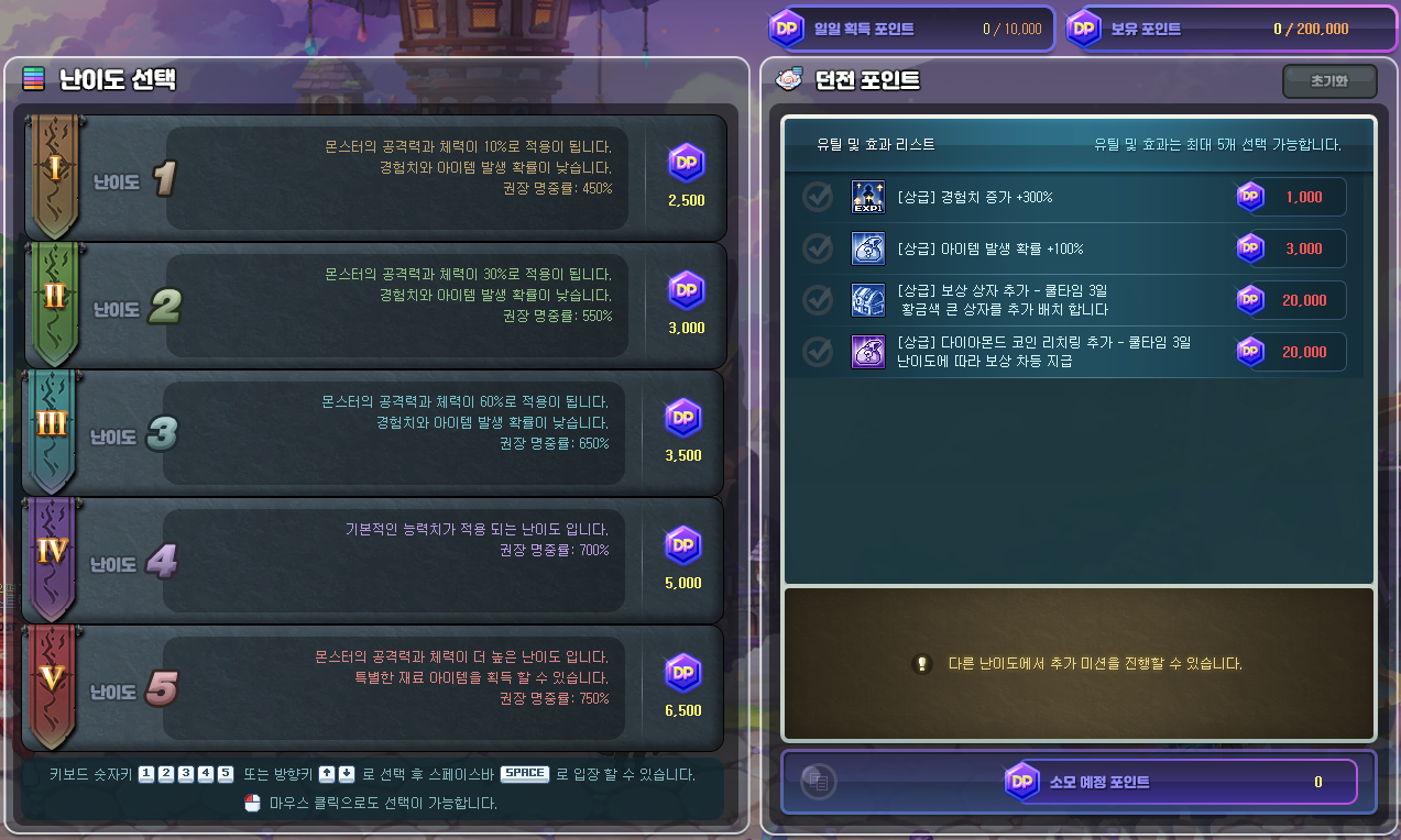 - 던전 포인트는 최대 200,000 포인트까지 보유할 수 있습니다.