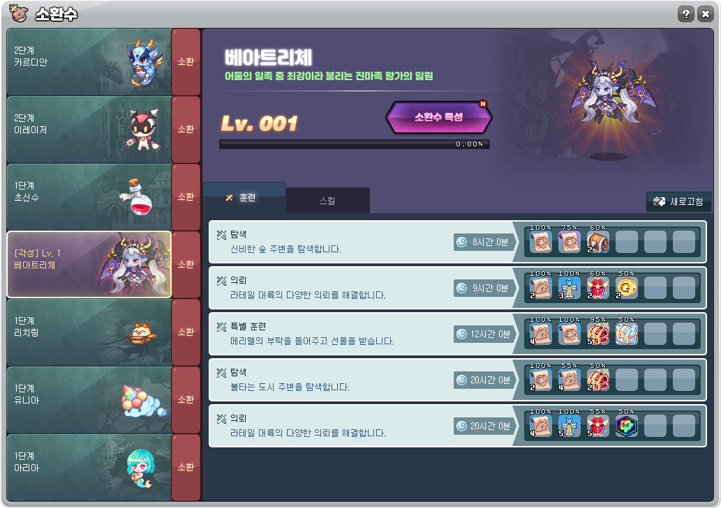 - 소환수 훈련 리스트 또한 각성 전용으로 변경되어 더욱 좋은 아이템을 획득할 수 있습니다.