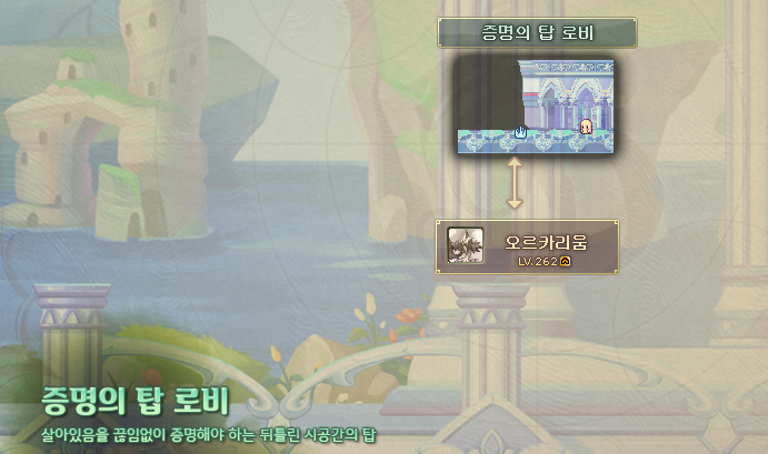 - 증명의 탑 로비 NPC 우리엘라를 통해 도전 가능합니다.