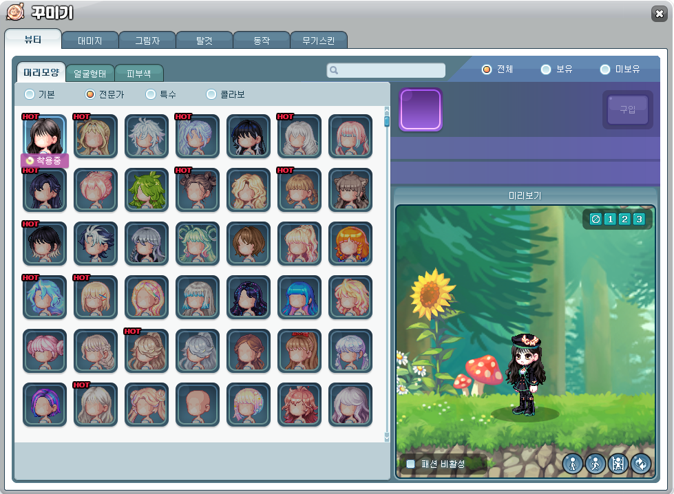 캐릭터 외형을 바꾸고, 직접 착용해 볼 수 있는 꾸미기 탭