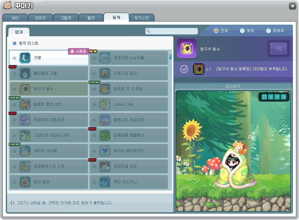 - 특정 외형의 경우 해당 변경권을 소지해야만 변경 및 구입이 가능합니다.