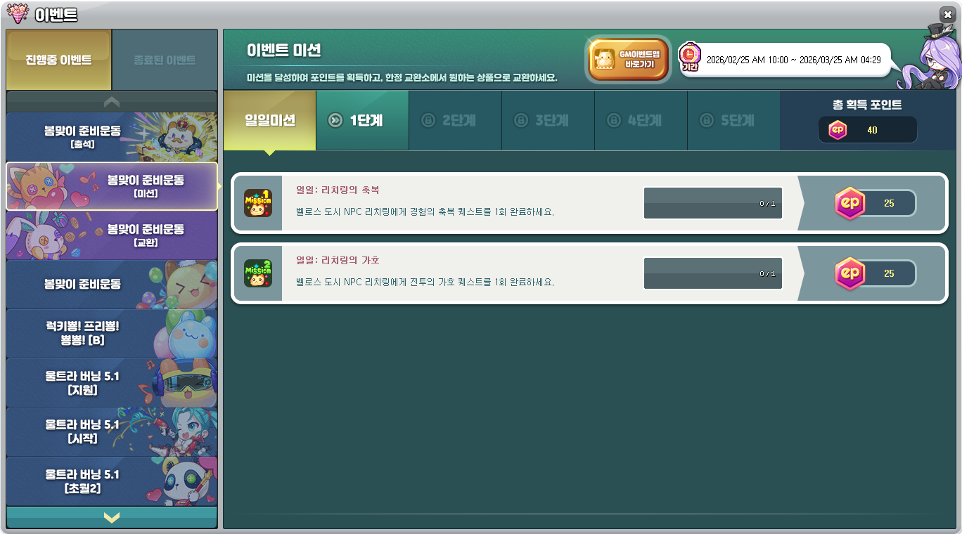 - 원하는 경우 GM이벤트 맵으로 바로 이동할 수 있습니다.