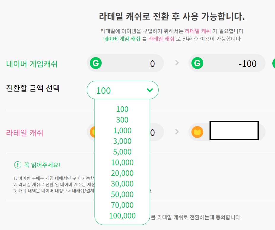 6200원 현질해서 그걸 라테일 캐쉬로 전환하려면