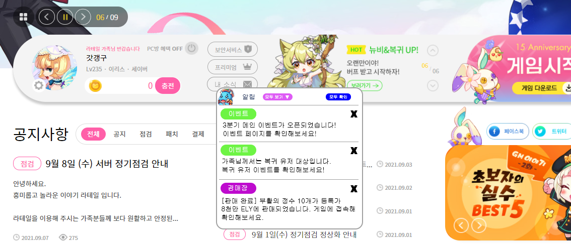예제로 좀 만들어봤는데 만약 공홈에 내 소식 기능 나오면 여기서 더 소식 알려주면 좋을만한게 어떤게 있을까요?