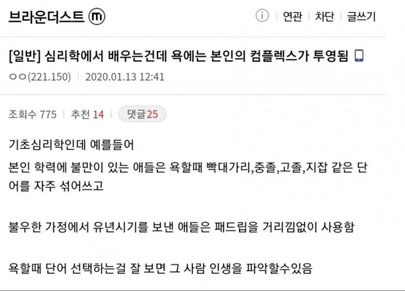 욕에는 자신의 컴플렉스가 투영된다