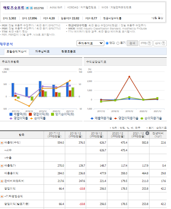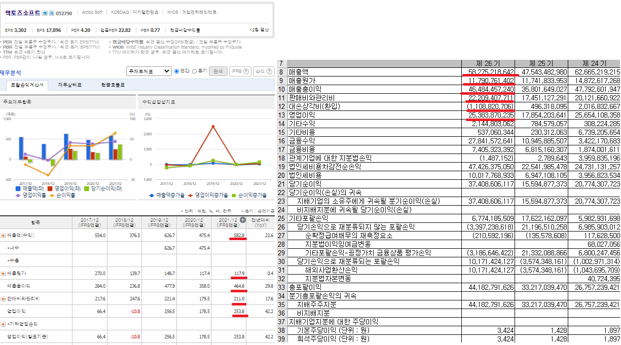 엑셀표가 더보기편해서 액토즈 재무제표다운받아서 비교를해보았다.