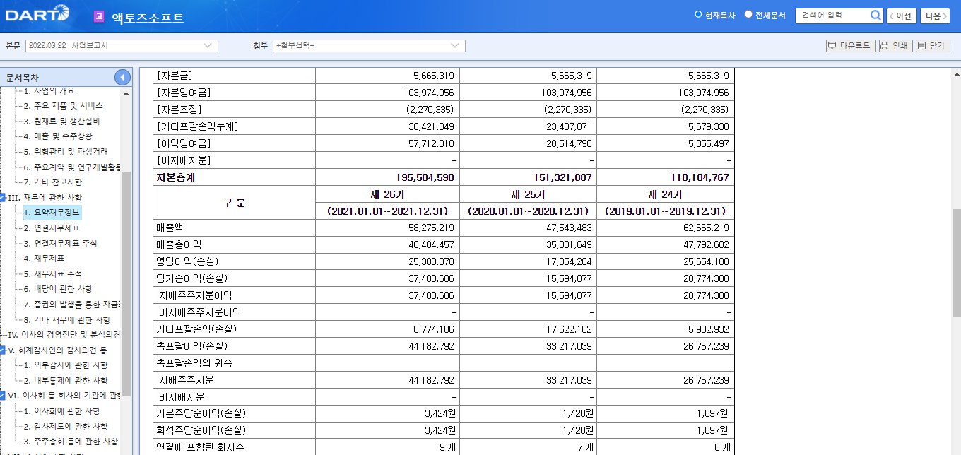 그리고 이것은 다트에 올라온 액토즈 사업보고서 내용임