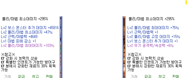 인챈으로 두개를(같은부위) 밑에 사진과 같이 성공을 시켰는데 지금 착용하고 있는게 오른쪽인데 착용하고 있는걸 계속 착용하는게 나을까요??
