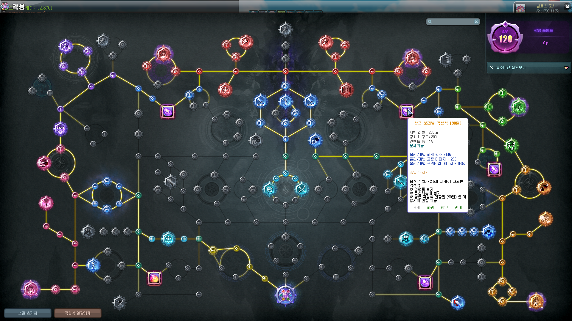 그런데 또 메모리얼이나 별자리같은 다른 내실이 그렇듯 시도횟수가 많아지면 크뎀 100%수준 이상의 좋은 각성석이 몇개 뜨긴 한다.