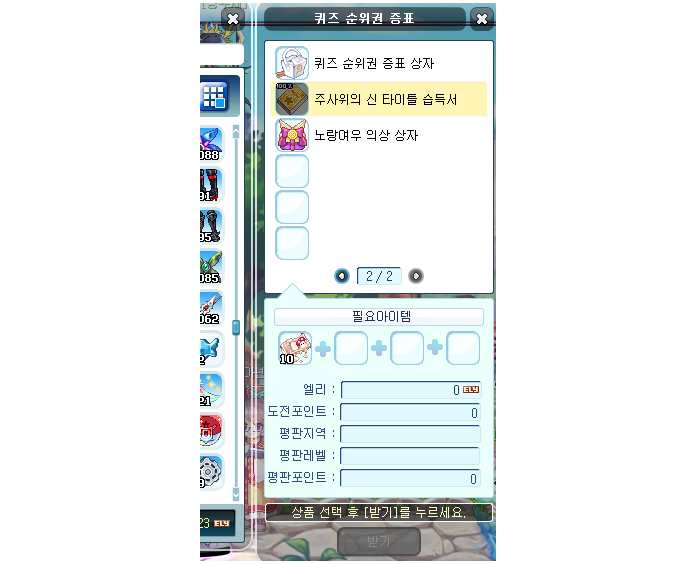 게임사에서 실수한건지는 모르겠지만 증표 10개만 있으면 주사위의 신 타이틀 100퍼로 성공가능합니다.