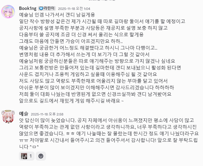 1-2. 길드 음성방에 있던 길드원A와 통보식 공지에 불만표시