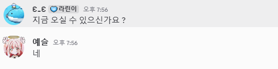 7. 25년 12월 1일 개인사정으로 글쓴이가 게임접속만 해놓고 잠수를 타거나, 디스코드 참여가 불가한 상황발생