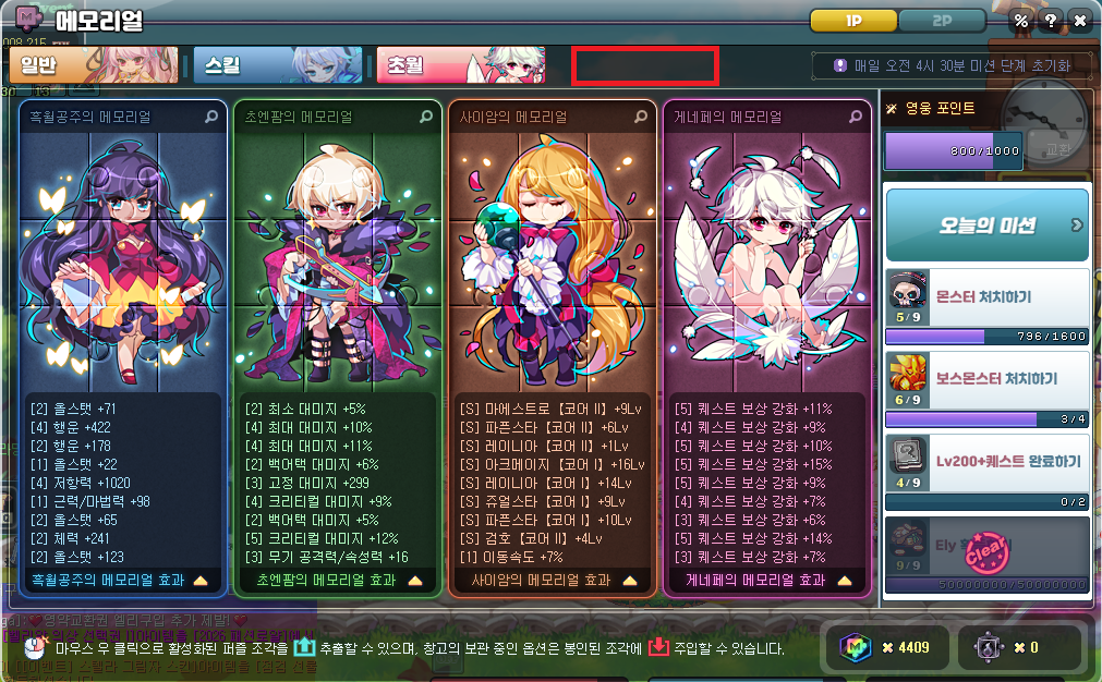 빨간곳 빈곳인데.. 왜 초월2 메모리얼 나올꺼 같지..?