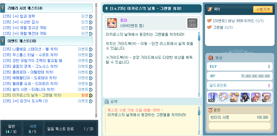 이카로스 완료하면 받아뒀던 버닝 퀘 전부 삭제되나요????