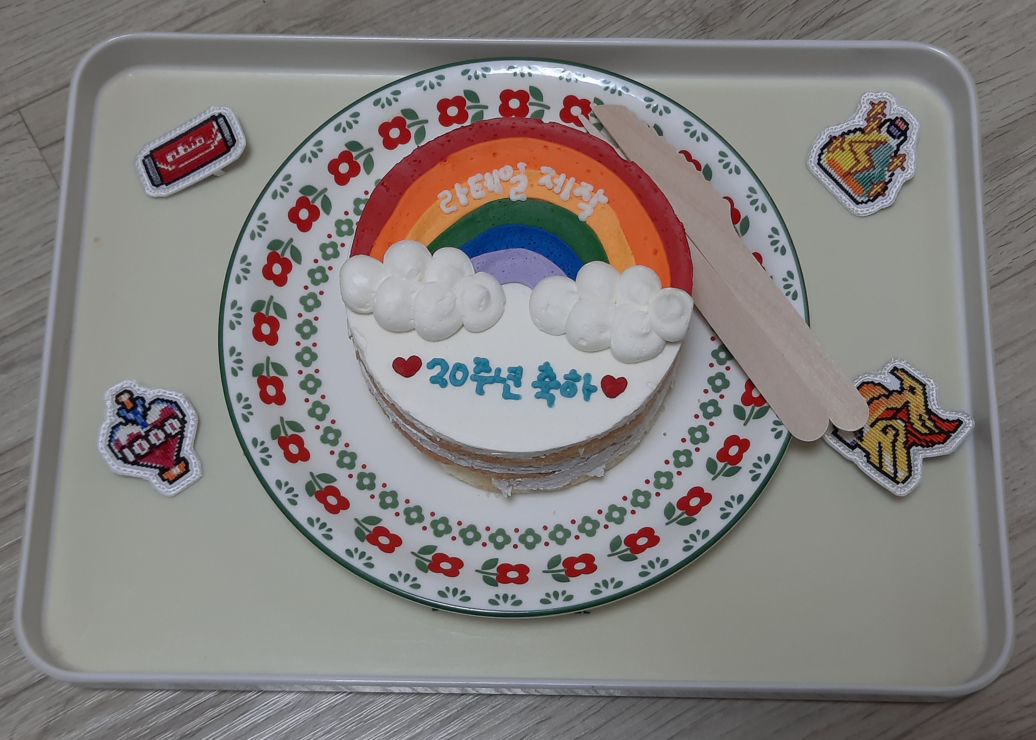 라테일 제작 20주년을 기념하기 위한 레터링 케이크