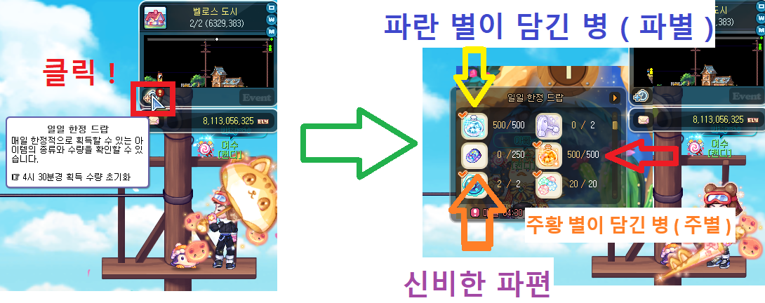 하루에 파란병을 500개 획득 가능한데용!