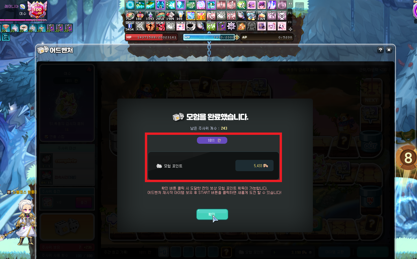 어드밴처 포인트는 주간 단위라 한 주가 지나면 초기화가 되버리니까