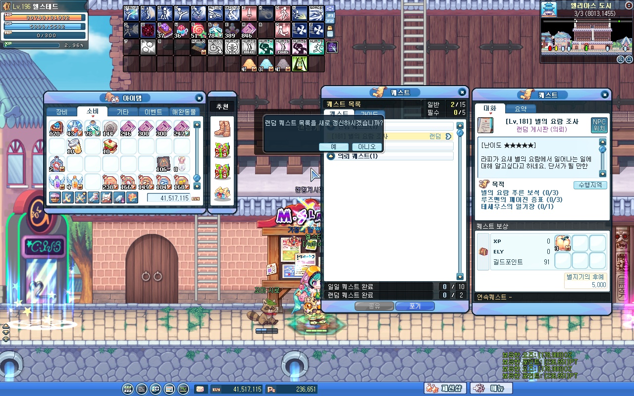 할만한 평판지역 퀘가 나오면 좋은데 안나오면 초기화물약로 퀘스트 갱신할때가 있는데