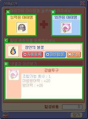트릭스터 라는 게임의 장비합성 시스템입니다.