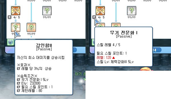 그런데 선행스킬인 무기전문화1의 렙제가 120입니다..ㅠㅠ