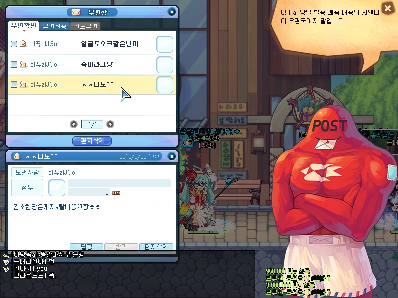 우편으로 정신적은 드립과 부캐를만들어 욕,드립을 친 ol퓨zlJGol 님을 고발합니다