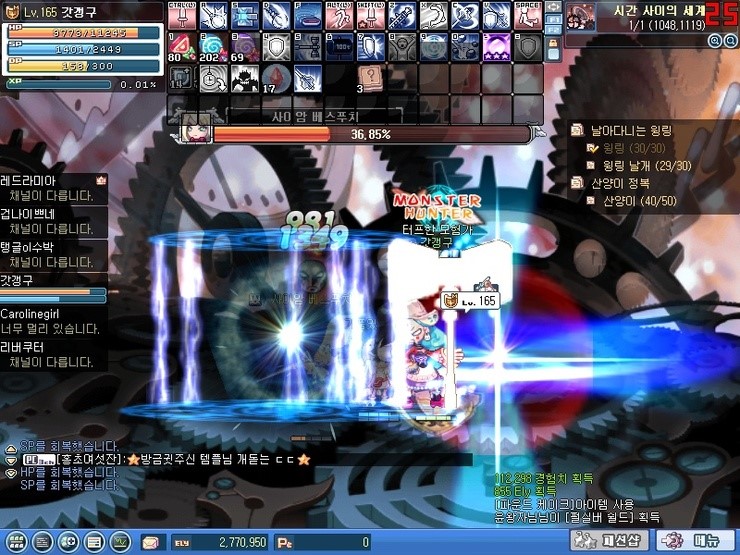 홀리 5차 스킬 합동 스샷이나 올리자..<.. 홀리 망하면 안대 ㅠㅠ..<둔기 그나마 찔끔 올랐으니 나중에 해봐야지..