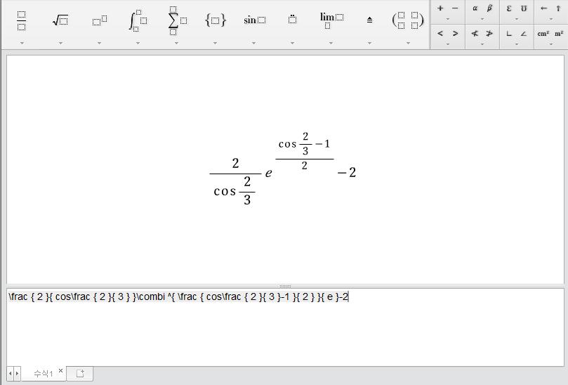 {2/cos(2/3)}e^[{cos(2/3)-1}/2]-2 이렇게 입력하면 되나???