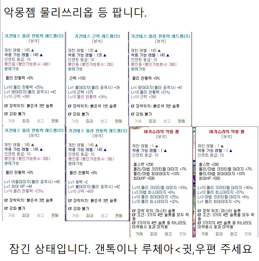 [팝니다] 악몽 물리쓰리옵, 기간물리투옵 등 팝니다.