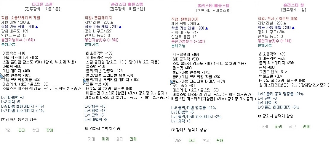 [팝니다] 다크문/홀리무기 /태초방어셋 팜~우편ㄱㄱ