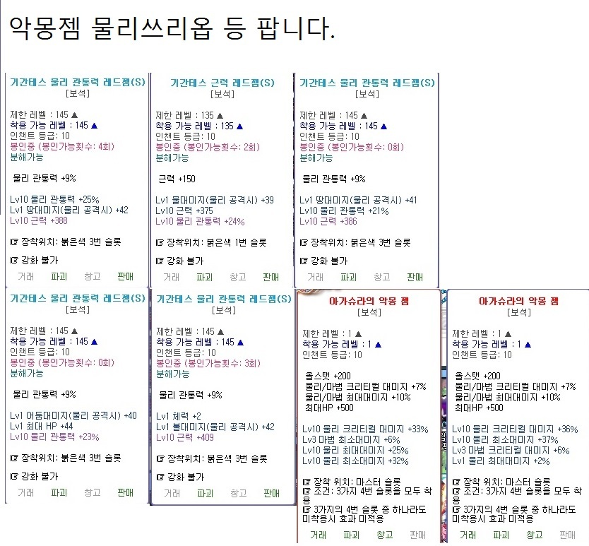 [팝니다] 오우겅분양권, 악몽젬 물리3옵 팝니다.