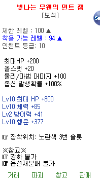 [팝니다] 빛무웬민트젬3옵/마이티크장팜