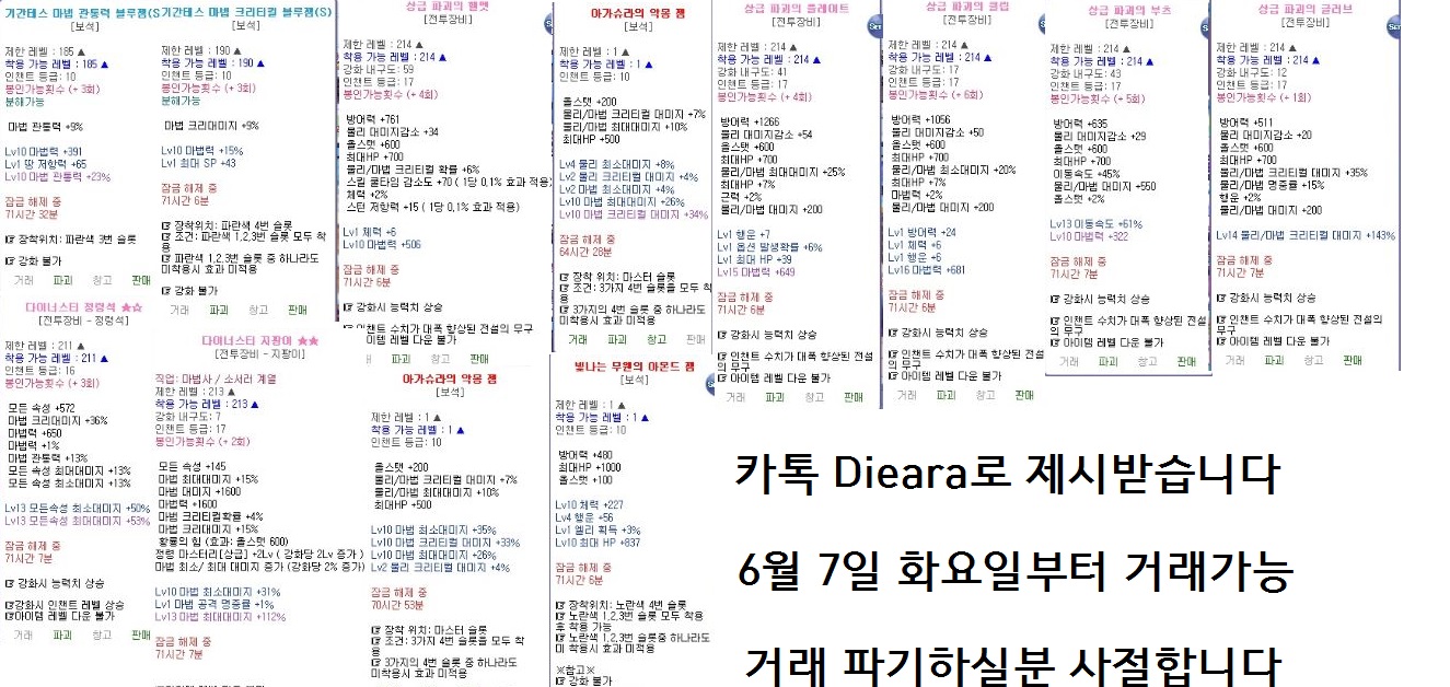 [팝니다] 상급파괴셋/악몽젬등 마법템/앜메템