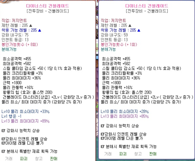 파멸부츠 근작 노강 13/13 258/46% 봉3 물쇠+0.7 or 0.95 바로팜 흥정가능