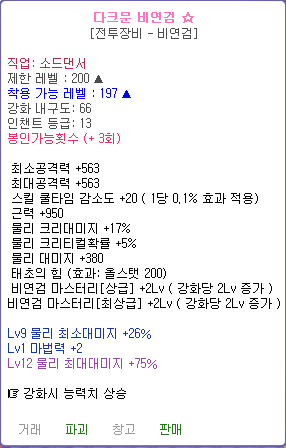[팝니다] 26/75 1강 다크문 비연검 팜