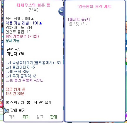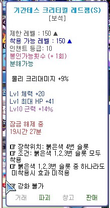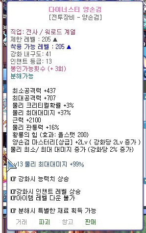 [팝니다] 테붉 투옵/ 기간 근14% / 다이너양검 / 다이너 힘정