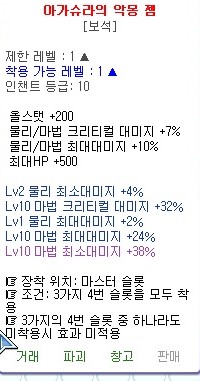[팝니다] 아가슈라 악몽젬 마법3옵 팝니다