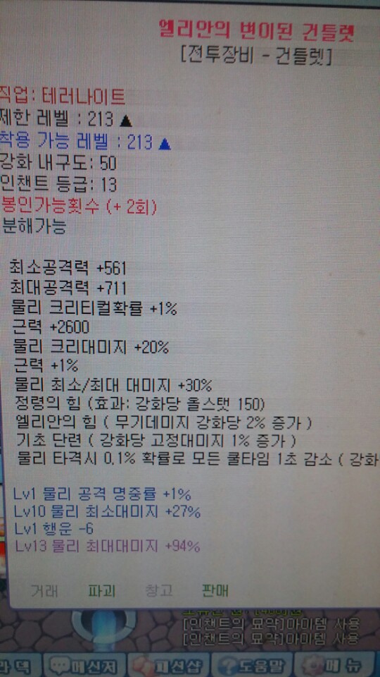 [팝니다] 엘리안 건틀렛 노강 팜~