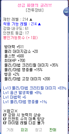 [팝니다] 상급 파멸장갑 팝니다.(ㅜㅜ)