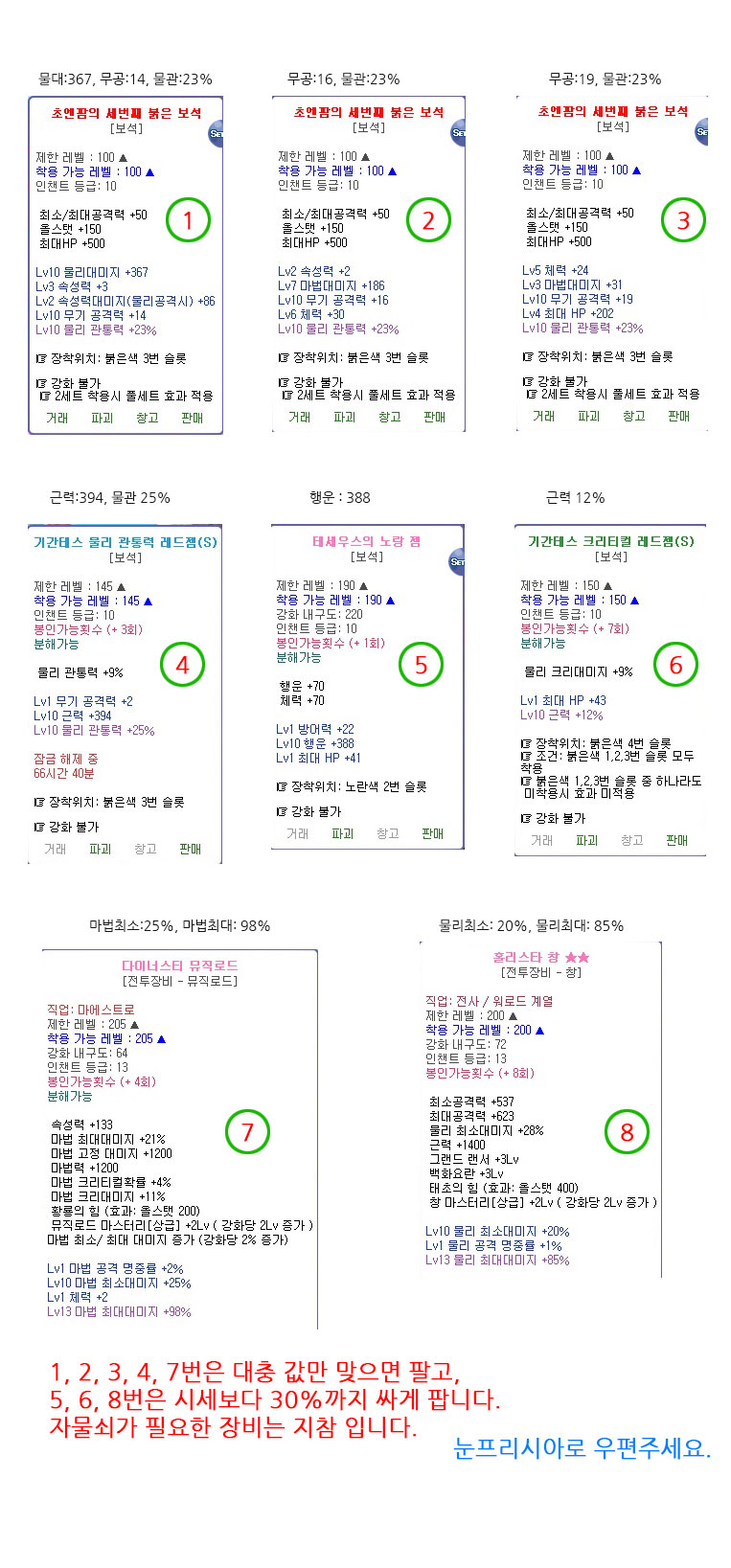 [팝니다] 초엔젬, 기타젬, 무기 팔아요.
