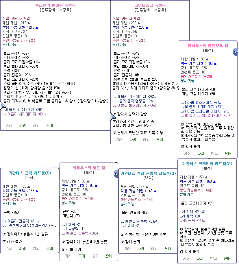 [팝니다] 엘리안,다이너흑랑옥/물리직업젬세트 ㅍㅍㅍ