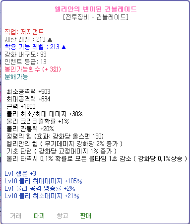 [팝니다] 엘리안 건블 고수치 팝니다
