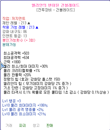 엘리안 건블 10작 최소21% 10작 최댐106% 봉3 팝니다
