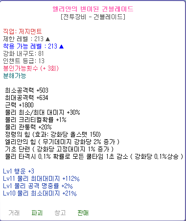 [팝니다] 엘리안 건블 고수치 팝니다