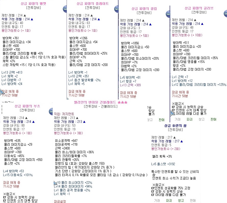 [팝니다] 상파멸 근작 엘랸건블풀강 상급참 팜