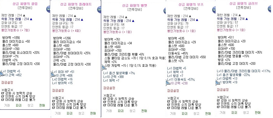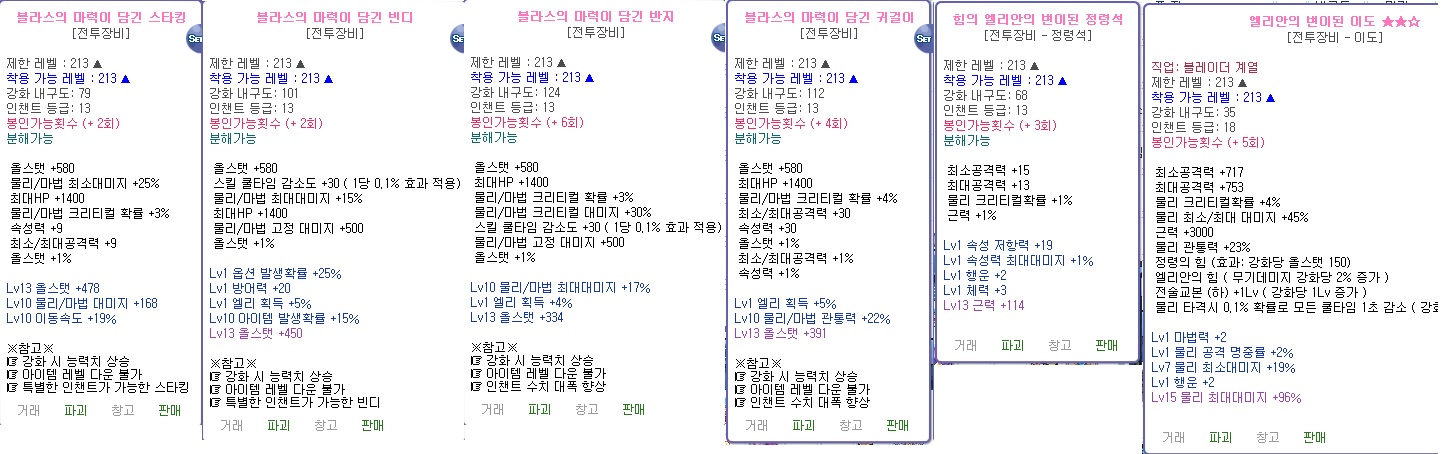 [팝니다] 상파멸셋, 젬, 이도5강, 힘정, 블라스 등