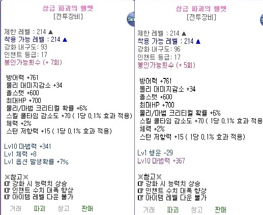 상급 파괴의 헬멧 10마법력341 봉7