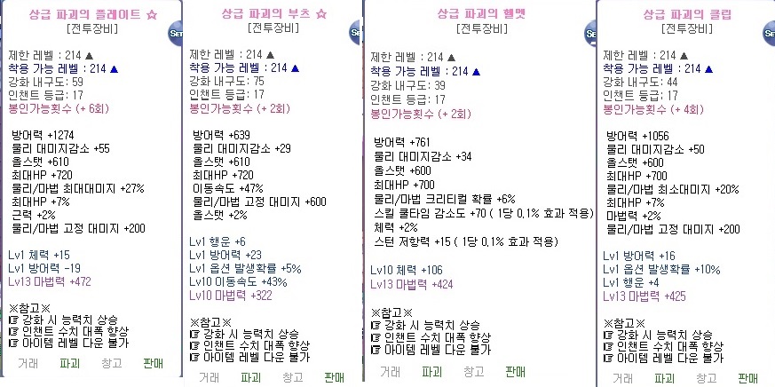 [팝니다] 상파멸장 2강153% 외 상파괴,파멸 마법작 팜