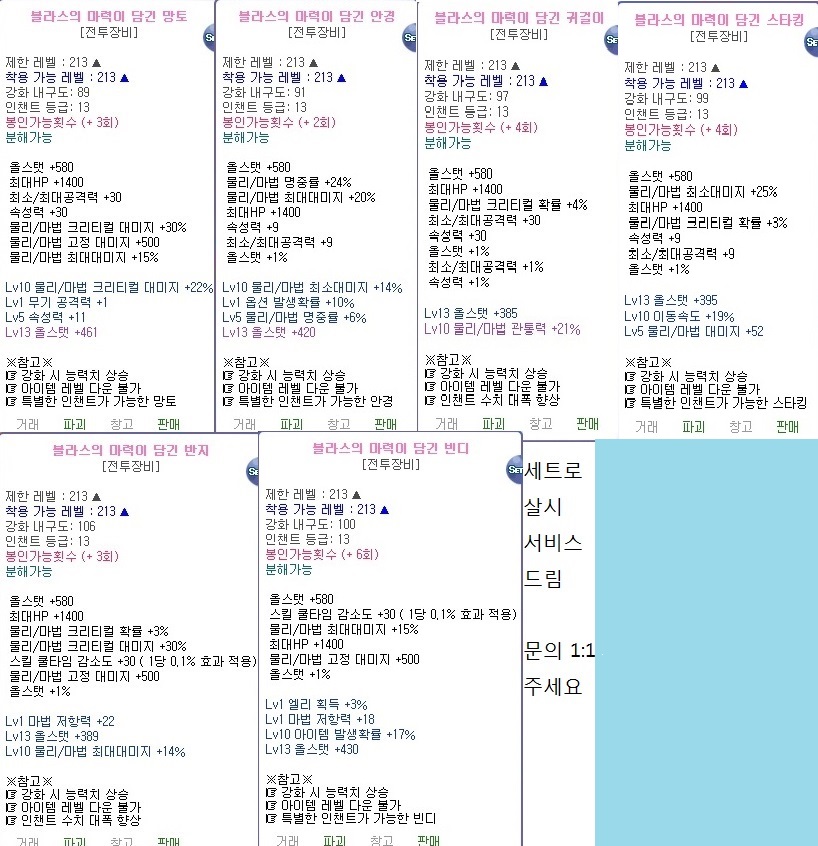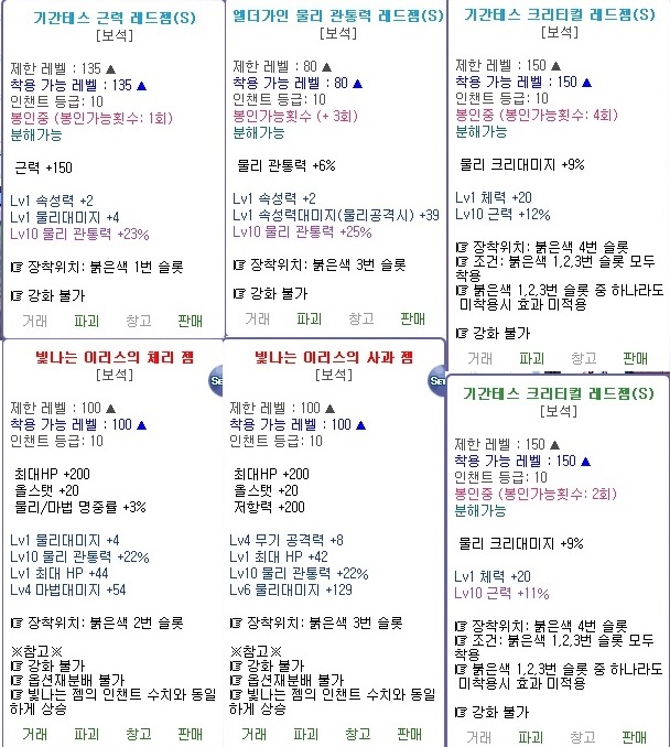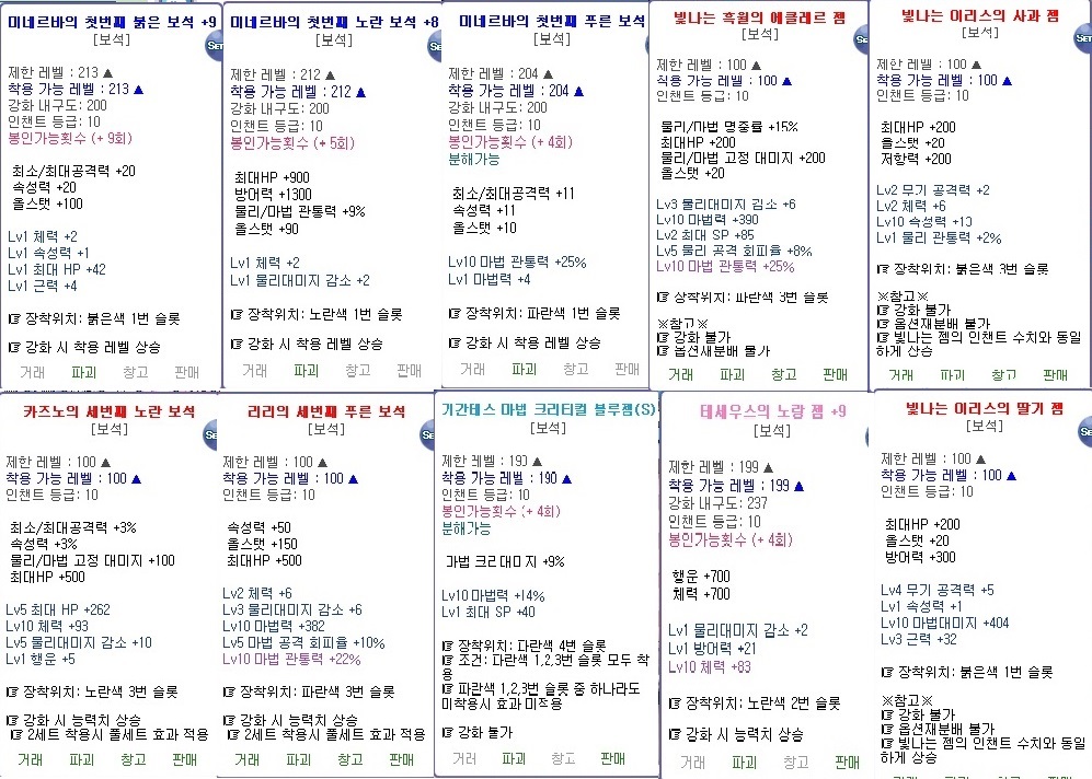 [팝니다] 물리/마법 젬들(세트,많음)/블라스악세,엘리안뮤로,참