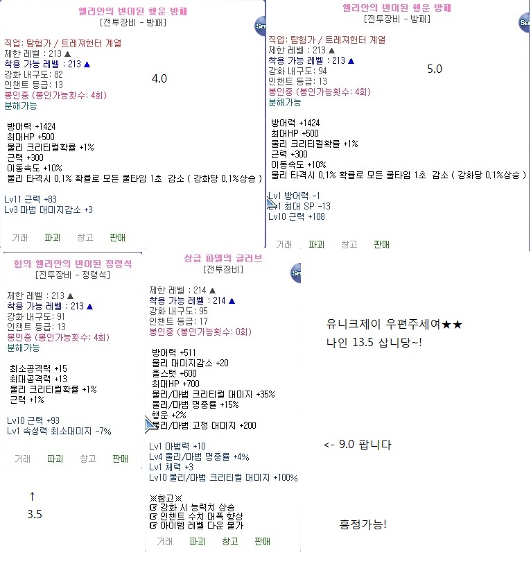 [팝니다] 엘랸 행운방패/상멸장100%/힘엘정 ㅍㅍ